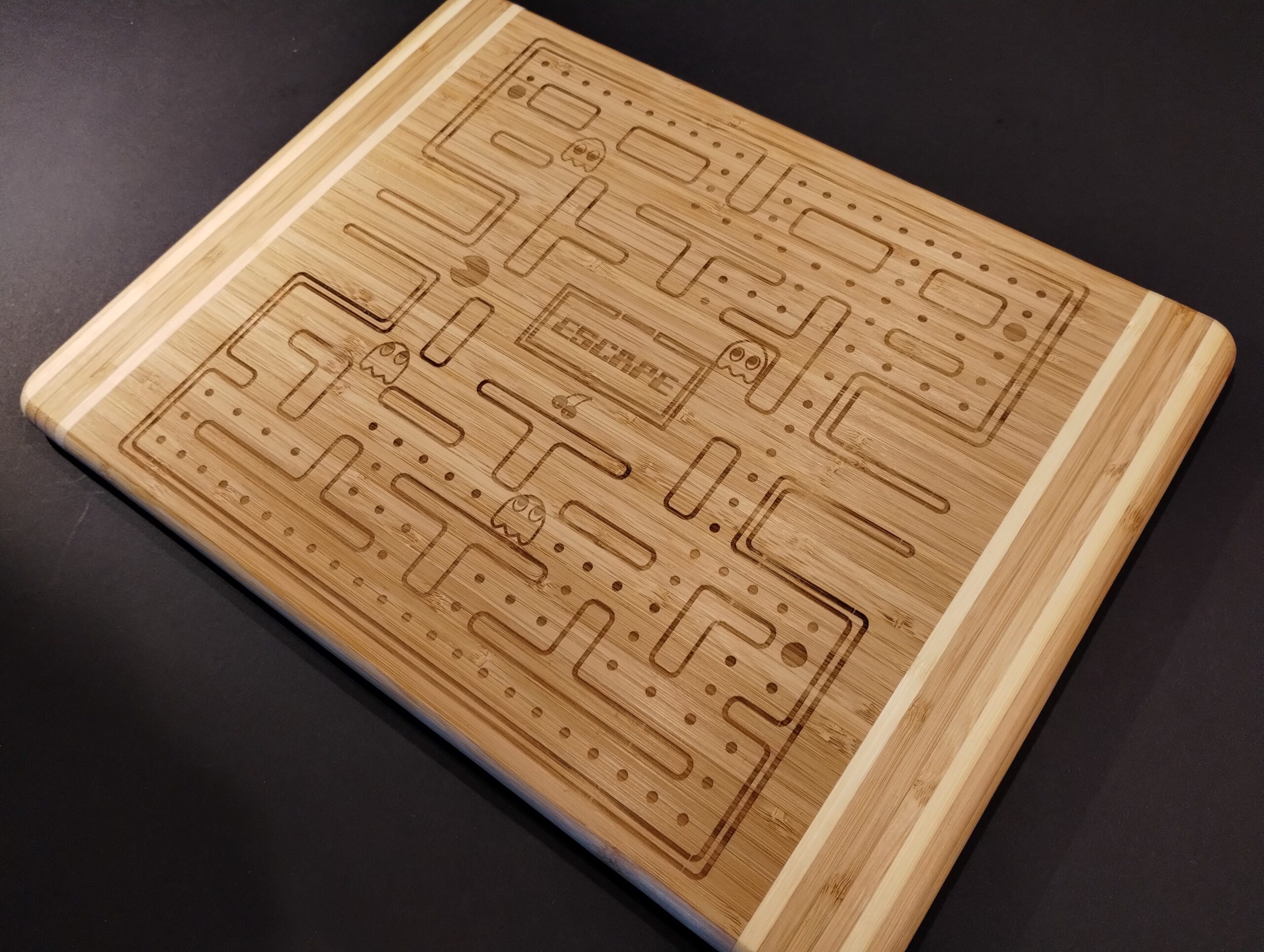 Dieses Schneidebrett bringt Arcade-Feeling in deine Küche! Das eingravierte Motiv erinnert an den 80er Jahre Videospiel-Klassiker „PAC MAN“. Das Brett besteht aus robustem Bambusholz und ist dank einer Behandlung mit Holzbutter besonders gut vor Flüssigkeiten geschützt.